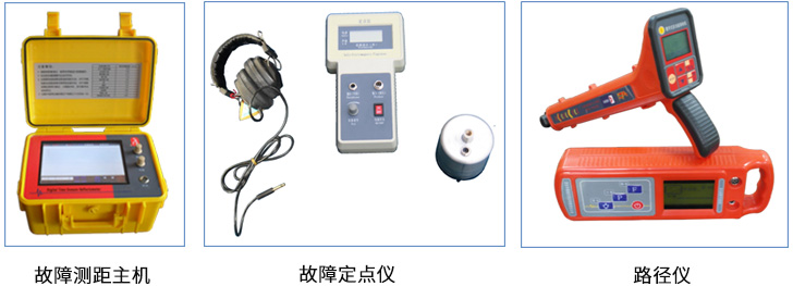 电缆故障定位仪 同步接收故障点放电时产生的声波和电磁波,经CPU处理并由液晶屏显示出探头测试点到故障点的距离及声波和电磁波的具体情况。 电缆路径仪 探测地下线缆的走向及深度。